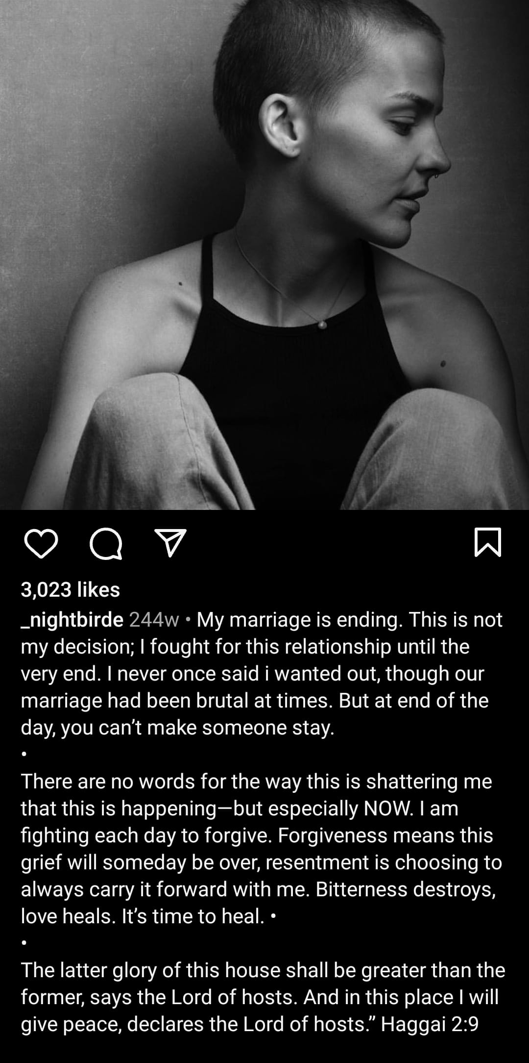 But with Nightbirde, my emotions were confused. The more I learned about her life, the more I felt inspired, not sad like I usually do. I felt like her cancer diagnosis lifted her from a life of anonymity to, like I mentioned earlier, immortality.