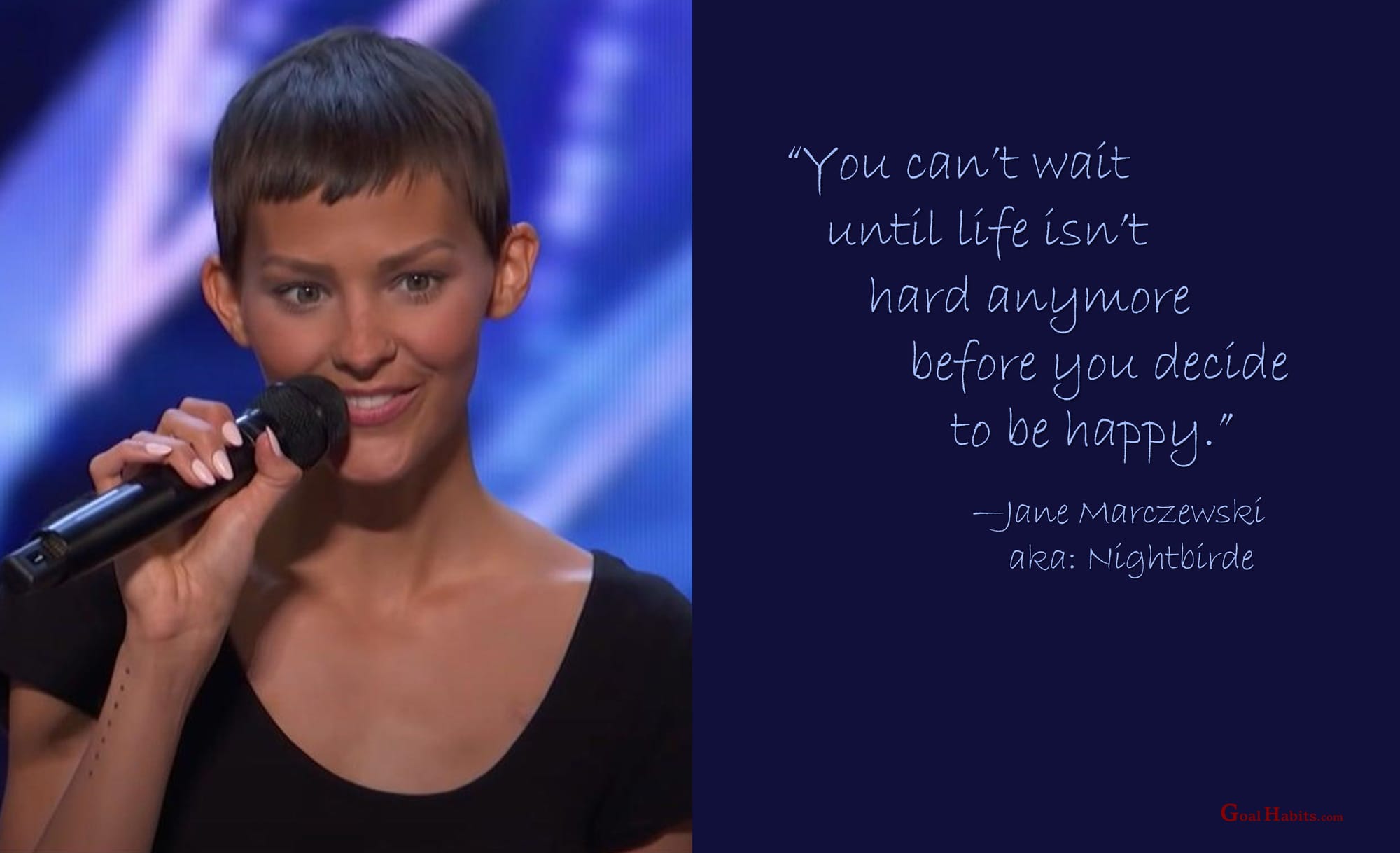 The woman’s name is Jane Kristen Marczewski. If you are a fan of the show, America’s Got Talent, you know her as Nightbirde. If you’re not a fan of the show, you may never have heard of her. I am here to acquaint you, because you need her in your life.