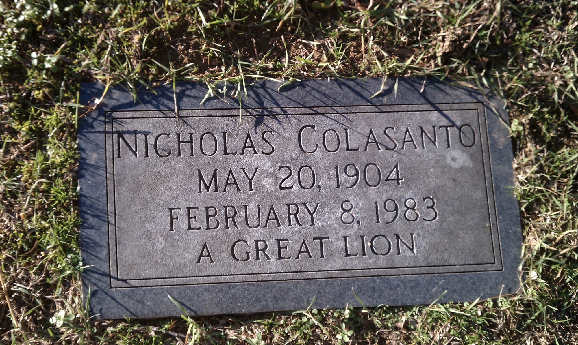 Nicholas Colasanto, who played "Coach" Ernie Pantusso on the first three seasons of the show, is actually buried in a cemetery just a few minutes from where I live. He is buried in a small, unassuming plot in Saint Ann's Cemetery in Cranston, Rhode Island. It happens to be the same cemetery Erin's grandmother is buried. I found his grave a couple of months ago for the first time.