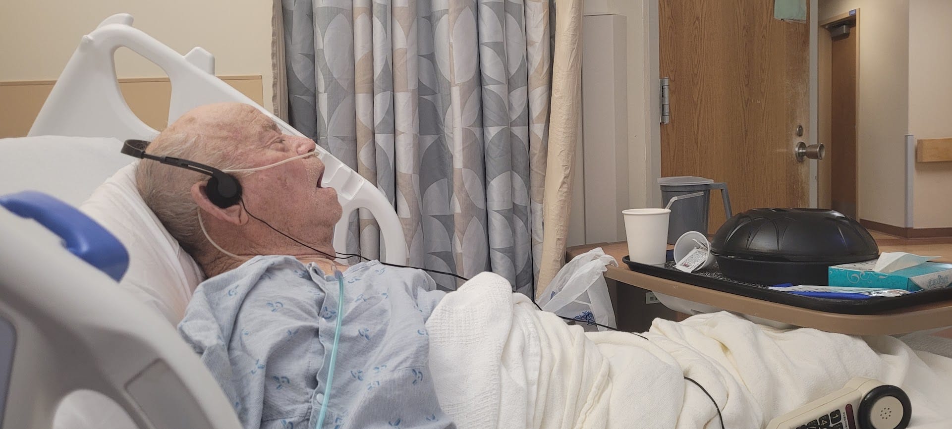 That was comforting, yet scary to me. It was comforting that my dad would have the mobility to still be able to go anywhere in the house. I was worried, however, that he would get entangled or trip on the tubing. Or that it might snag on something.